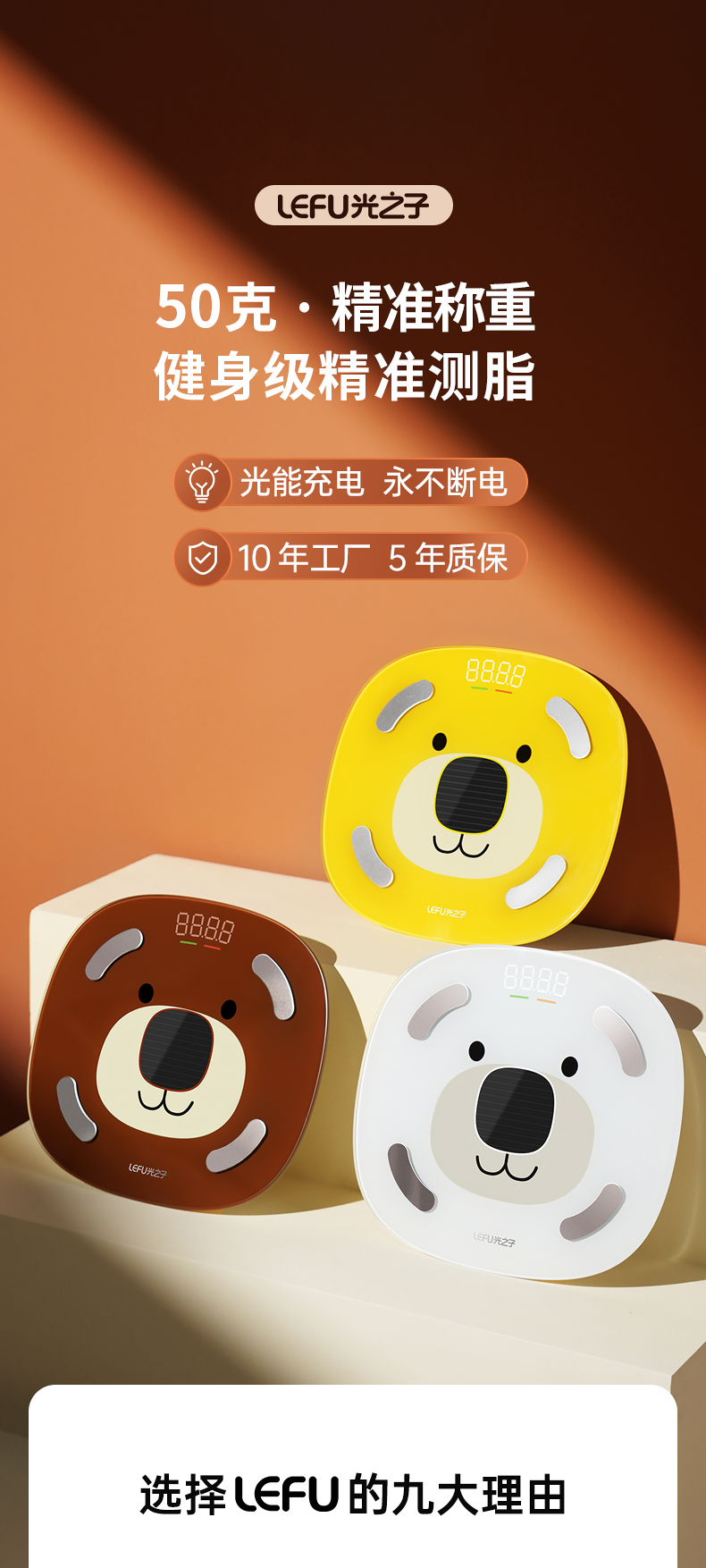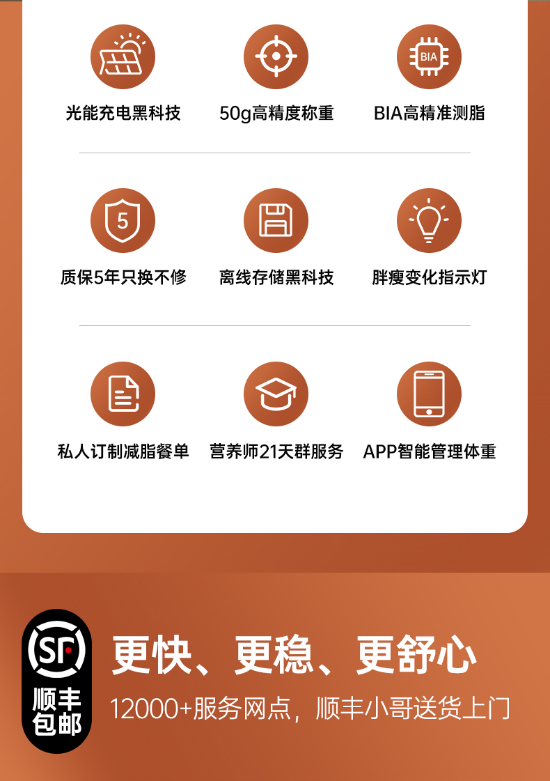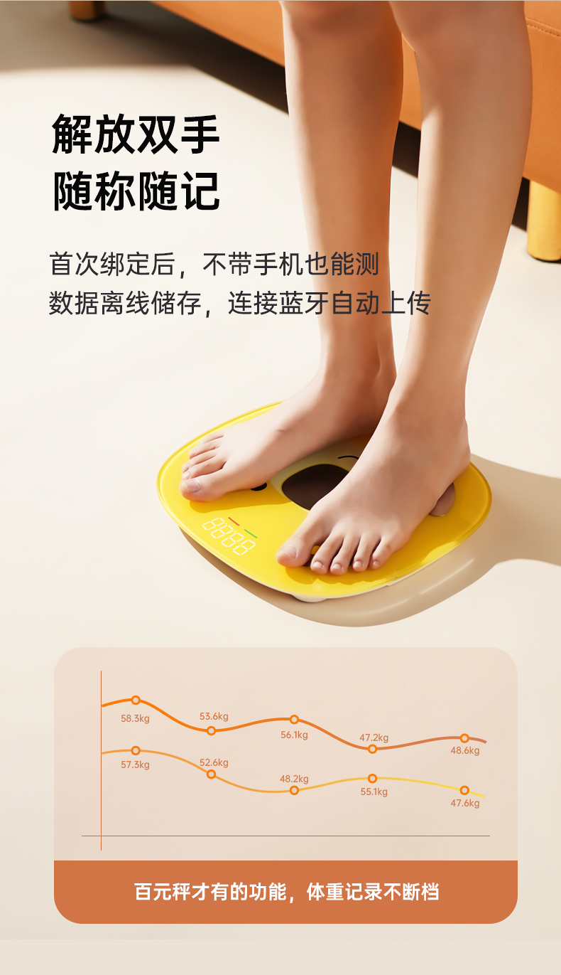 光能充电·健身级精准称重测脂